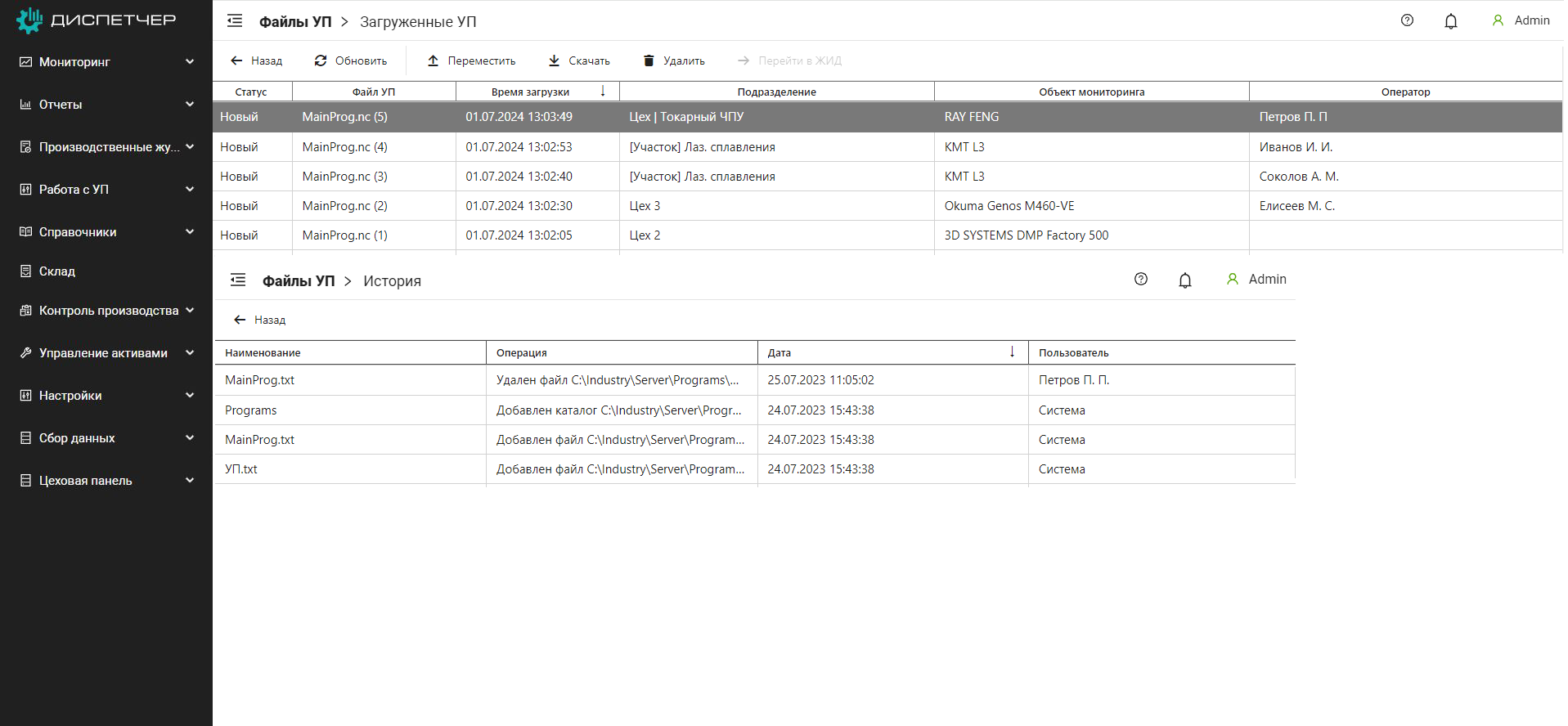 Комплекс «Диспетчер» обеспечивает широкий набор функций по управлению применением программ для станков с ЧПУ – раздел Работа с УП, содержащий подразделы:.